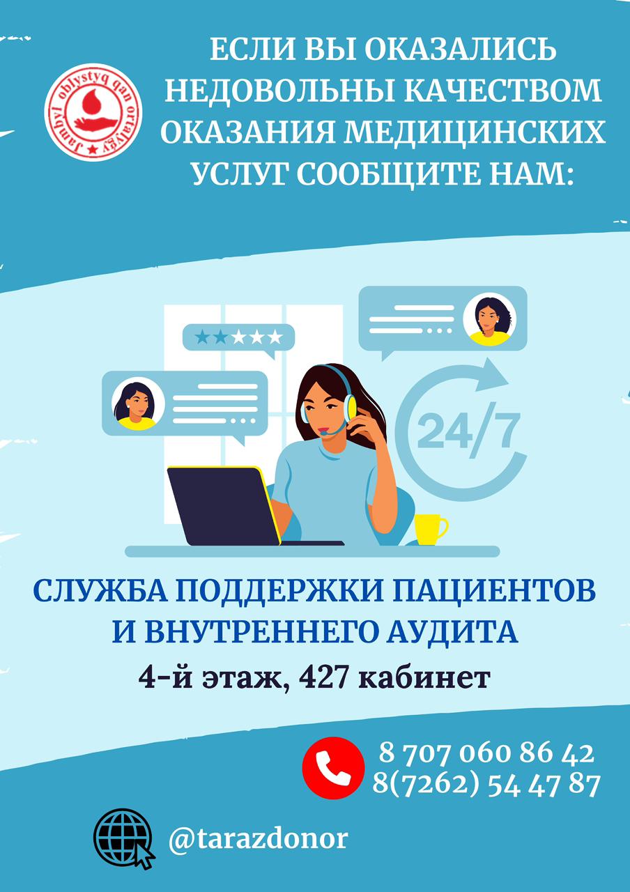 • Пациенттерді қолдау және ішкі аудит қызметінің Call-орталығына келесі нөмір бойынша хабарласуыңызға болады: