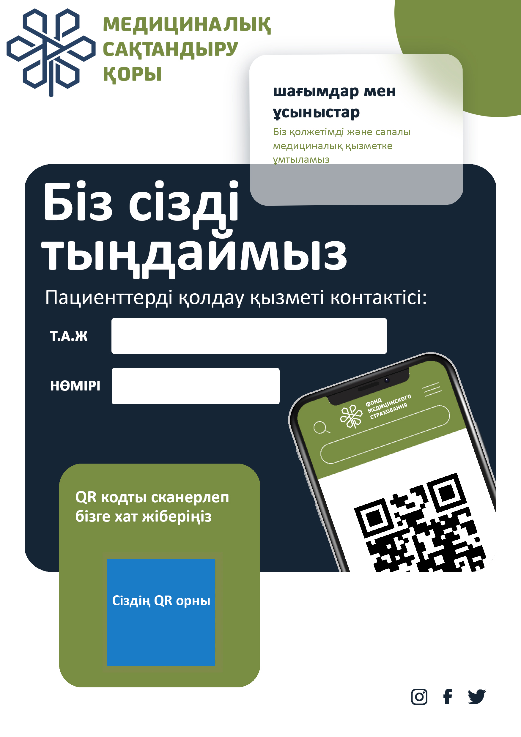 Медициналық көмек алу кезінде қосымша сұрақтар немесе мәселе туындаған жағдайда өз клиникасындағы Пациенттерді қолдау және ішкі сараптама қызметіне жүгіну қажет. Егер жағдайды сол жерде шешу мүмкін болмаса, Әлеуметтік медициналық сақтандыру қорының келесі байланыс арналарының біріне өтініш қалдыра алады: