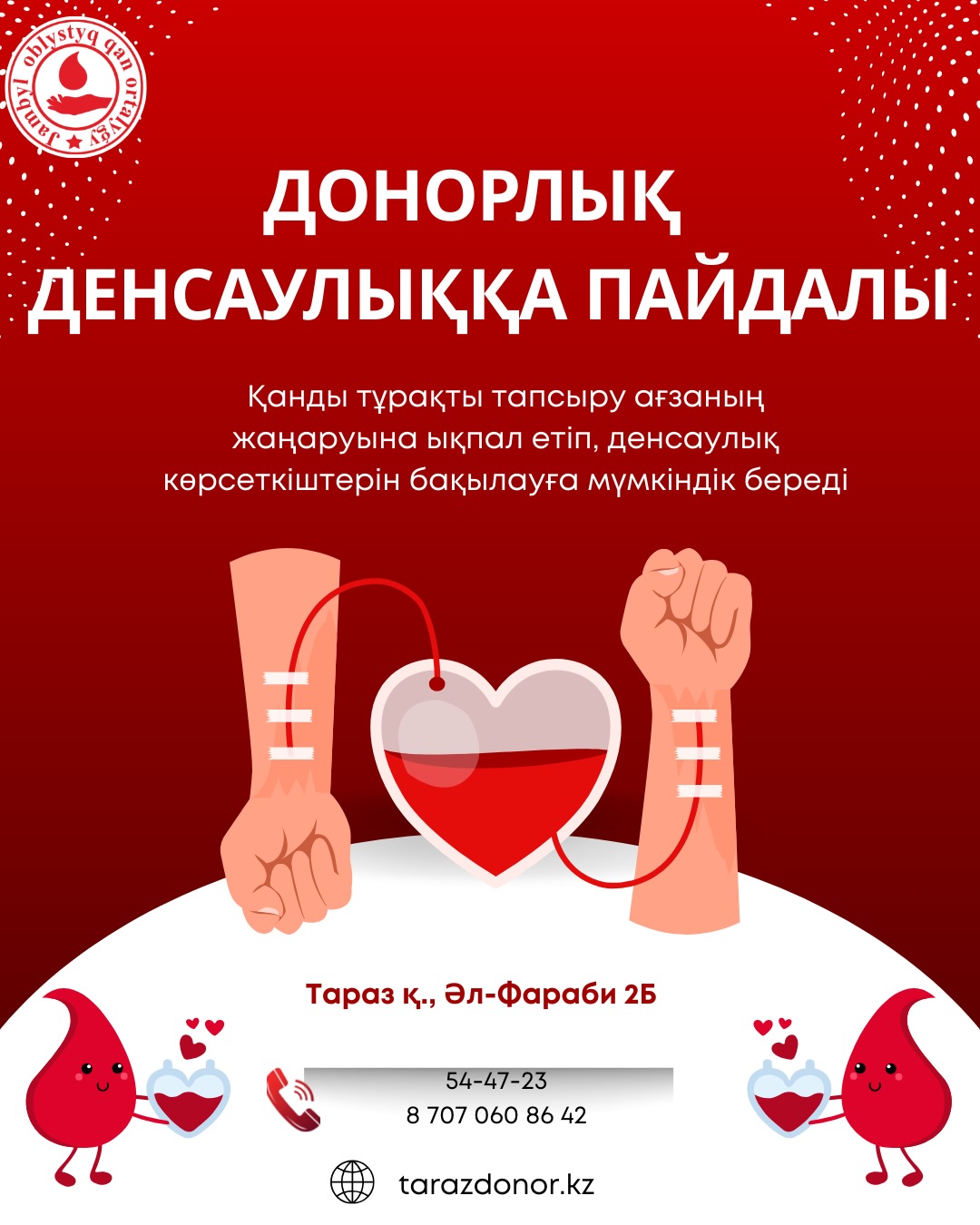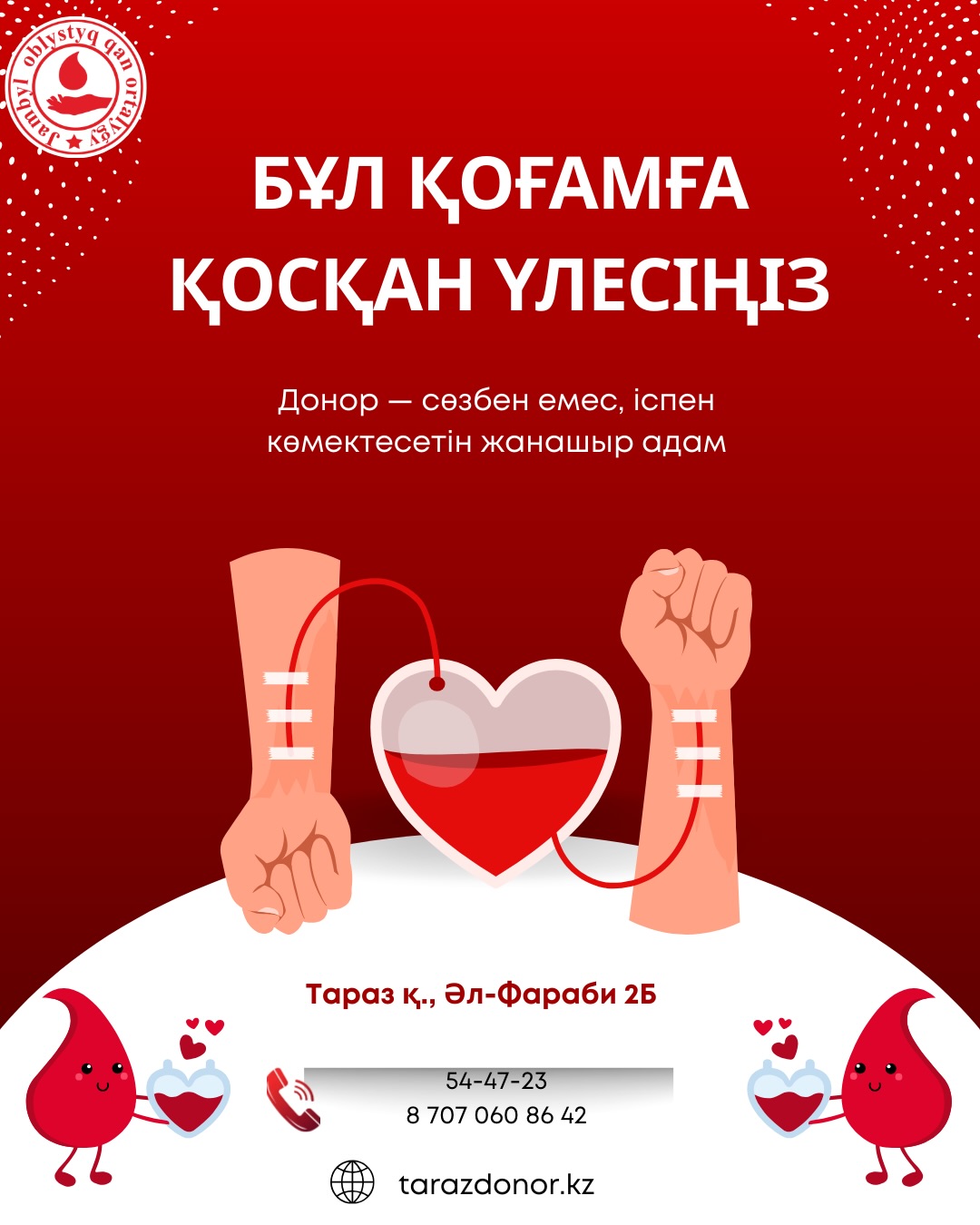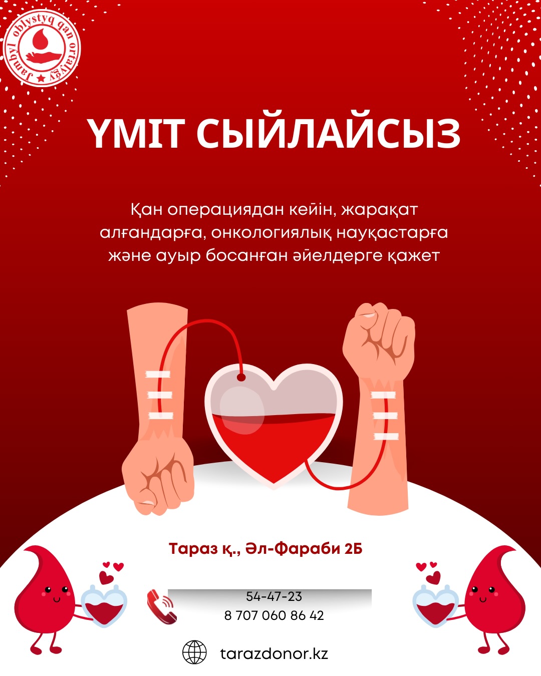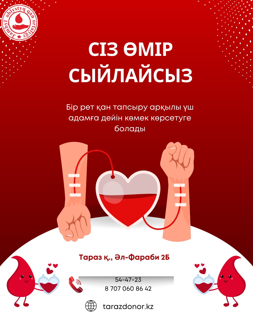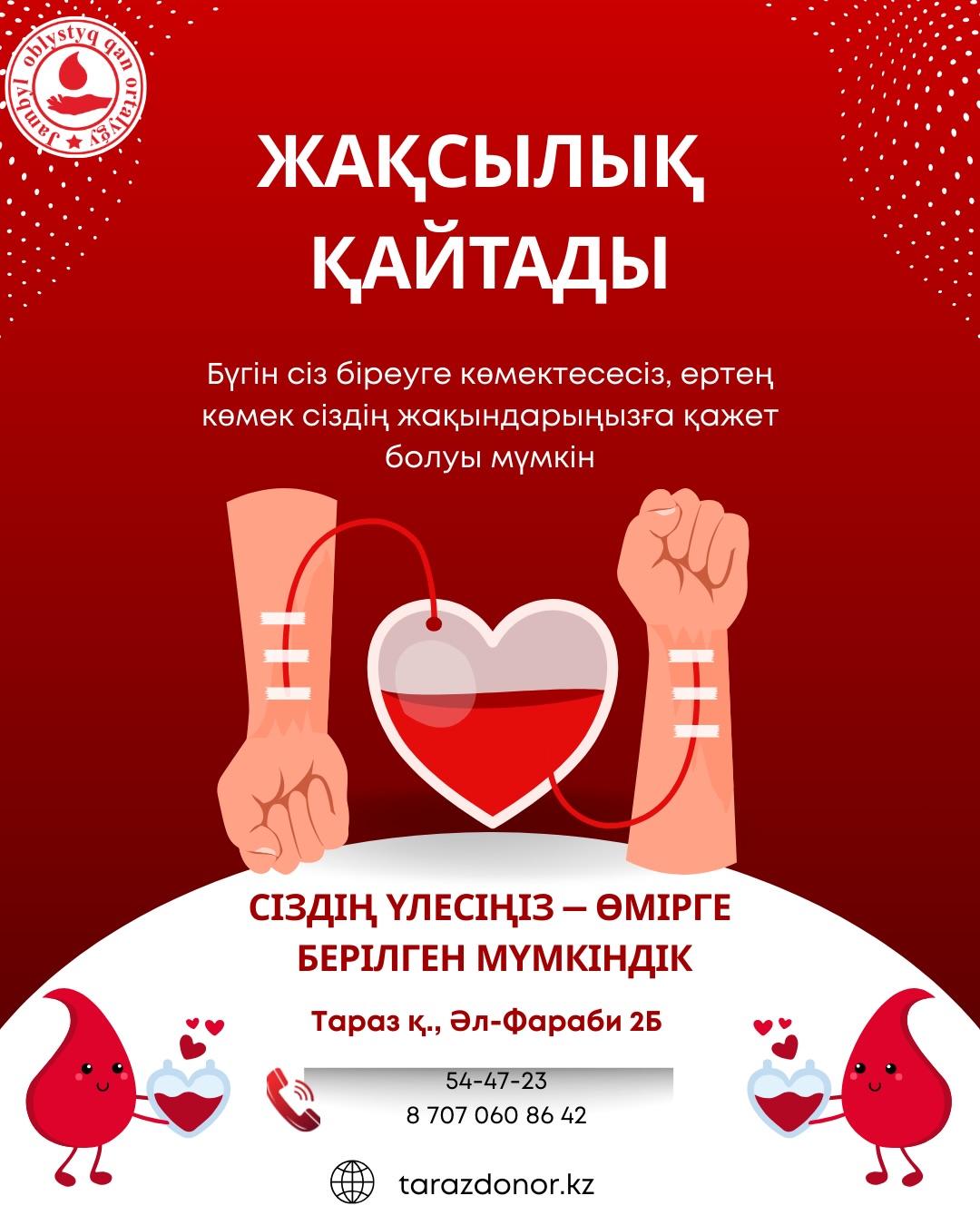 Жамбыл облыстық қан орталығы сіздерді қан тапсыруға шақырады.