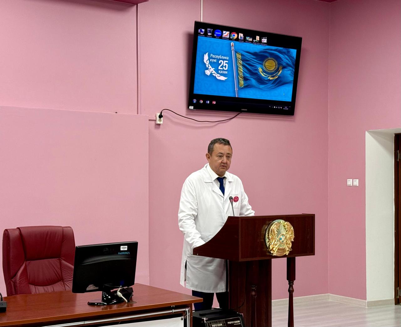 В торжественной обстановке директор центра крови Гулам Умаров произнес поздравительную речь, поделился мудрыми размышлениями о значении независимости и выразил искренние пожелания коллегам, которые трудятся на благо развития страны.