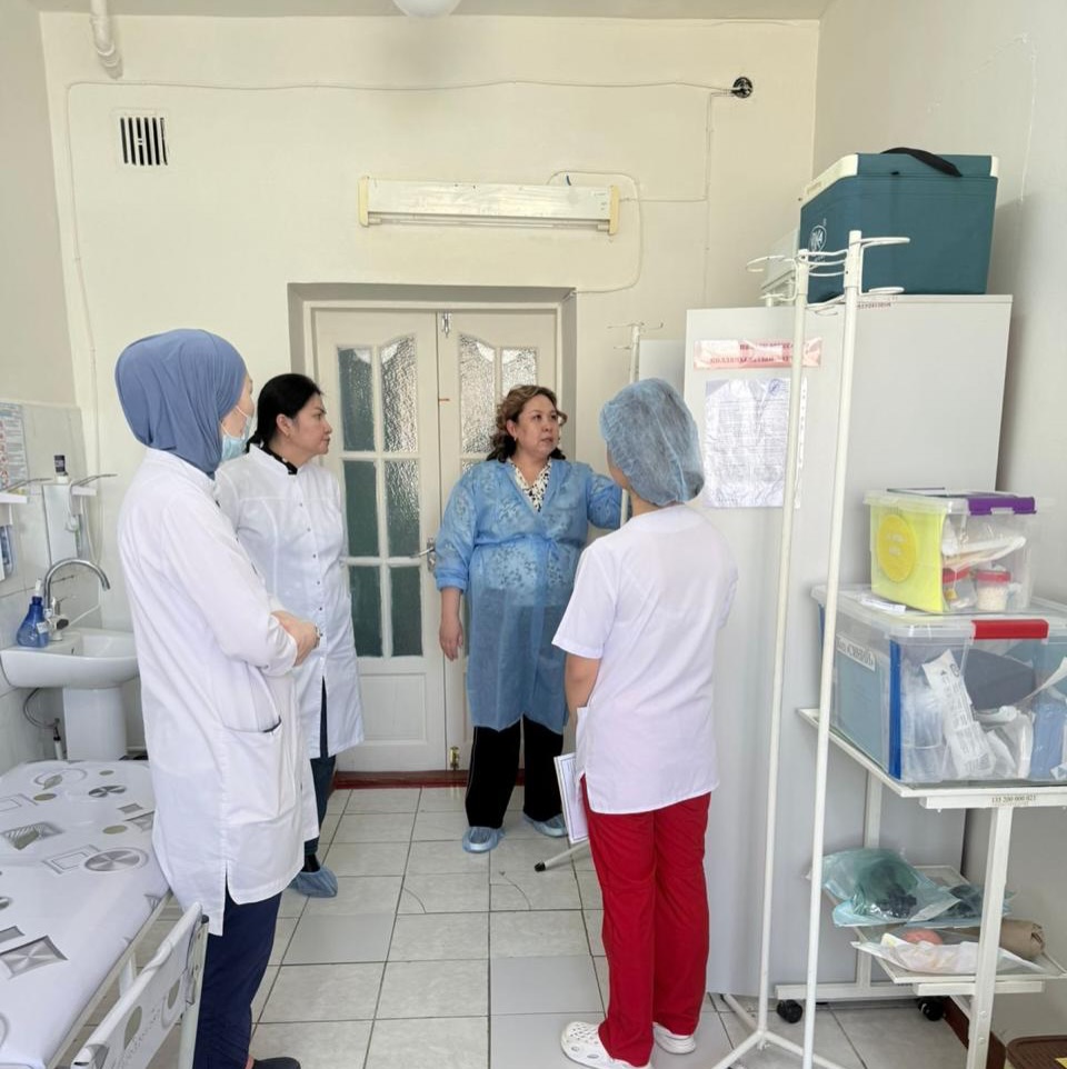 Плановый мониторинг в Турар Рыскуловской центральной районной больнице. Сегодня специалисты Жамбылского областного центра крови провели очередной мониторинг, направленный на оценку клинического применения донорской крови и её компонентов. Основная цель визита — анализ практики трансфузионной терапии и соблюдение стандартов и протоколов при переливании крови пациентам. В рамках комплексной работы по повышениюкачества медицинской помощи Центр кровирегулярно проводит организационно-методическиевыезды, способствующие развитию клиническойтрансфузиологии в медицинских учрежденияхрегиона. В состав рабочей группы: