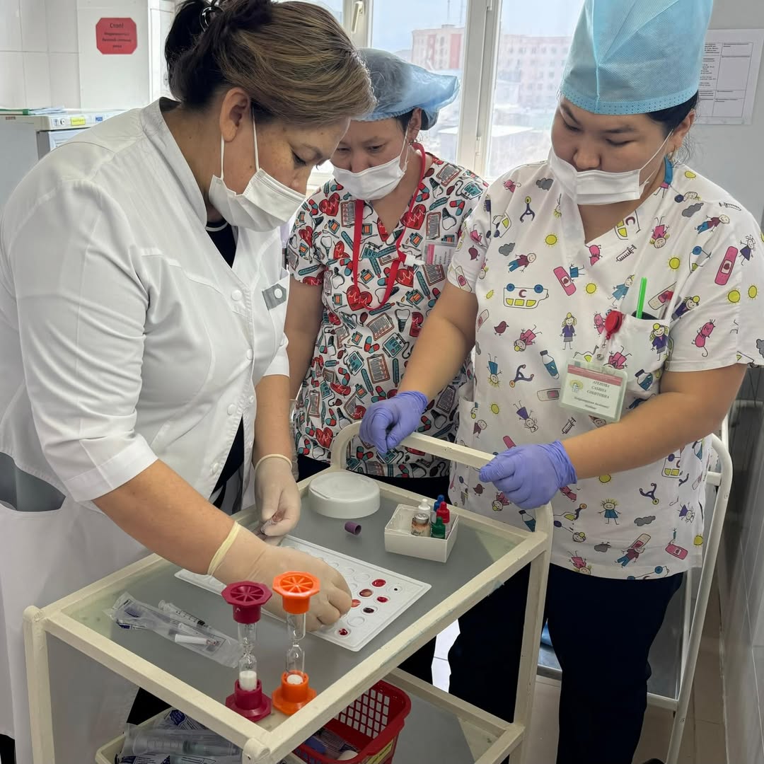 Плановый мониторинг в Жамбылской областной детской больнице. Сегодня специалисты Жамбылского областного центра крови провели очередной мониторинг, направленный на оценку клинического применения донорской крови и её компонентов. Основная цель визита - анализ практики трансфузионной терапии и соблюдение стандартов и протоколов при переливании крови пациентам. В рамках комплексной работы по повышению качества медицинской помощи Центр крови регулярно проводит организационно-методические выезды, способствующие развитию клинической трансфузиологии в медицинских учреждениях региона. В состав рабочей группы: