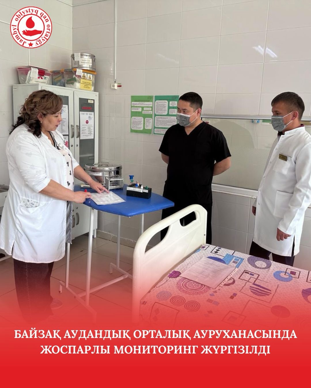 Плановый мониторинг в Байзакской центральной районной больнице. Сегодня специалисты Жамбылского областного центра крови провели очередной мониторинг, направленный на оценку клинического применения донорской крови и её компонентов.